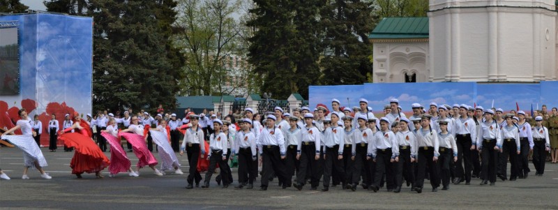 В параде, прошедшем на главной площади города — Советской, участвовали офицеры и курсанты Ярославского высшего военного училища противовоздушной обороны, представители региональных управлений МВД, Росгвардии, МЧС, Федеральной службы судебных приставов, ФСИН, юнармейцы, а также учащиеся кадетских классов нашей школы.